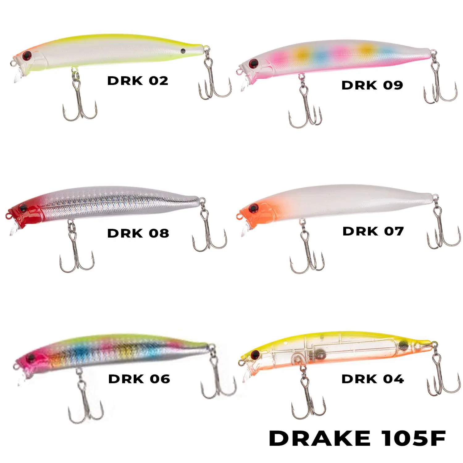 Caretta Drake 105F, özellikle sığ kıyı avcılığı ve Levrek avı için tasarlanmış, performansı ve güvenilirliği kanıtlanmış bir Floating (Yüzen) maket balıktır. 10.5 cm boyu ve 16 gr ağırlığı ile ideal bir atış-yüzüş dengesine sahiptir. Max 30 cm dalma derinliği (sığ dalarlı yapısı) sayesinde sığlıklar, kayalık bölgeler ve otlukların hemen üzerinden geçerek avcı balıkları tahrik eder.