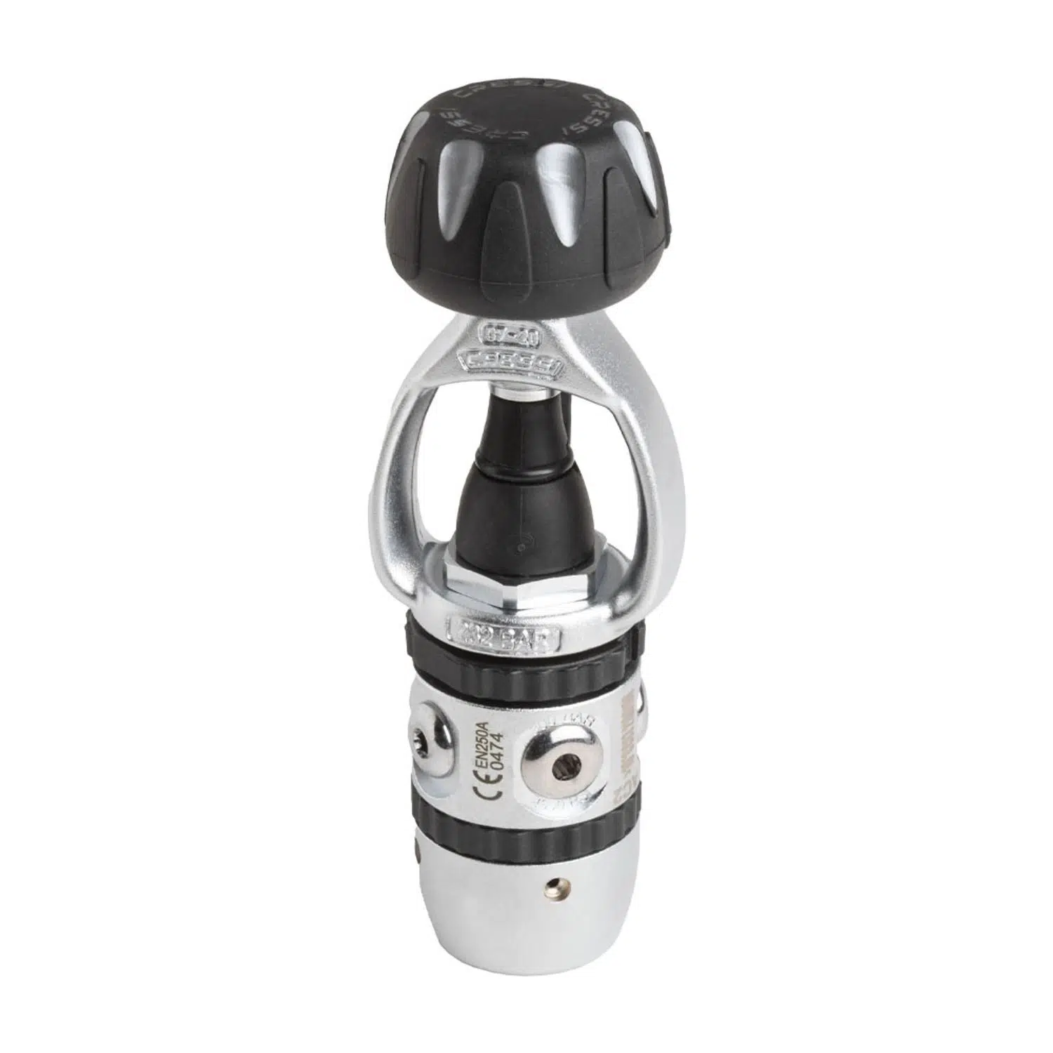 - Cressi'nin türünün tek örneği olan özel döner halka somun sistemi sayesinde hızlı ve kolay ayarlama.Cihaz, regülatörü sökmeden özel bir anahtar kullanılarak hızlı ve doğru bir şekilde kalibre edilebilir.