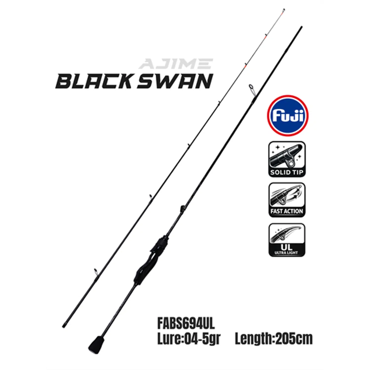 Fujin Ajime Black Swan, Aji ve hassas LRF avcılığında hafif sahteleri daha kontrollü kullanmak, en küçük dokunuşları daha net hissetmek ve yorulmadan uzun süre avda kalmak isteyen balıkçılar için geliştirilmiş dengeli bir kamıştır. 205 cm boyu, 0.4–5 gr atar aralığı ve 92 gramlık hafif yapısıyla özellikle mikro sahte, jighead ve finesse kurulumlarda keyifli bir kullanım sunar.